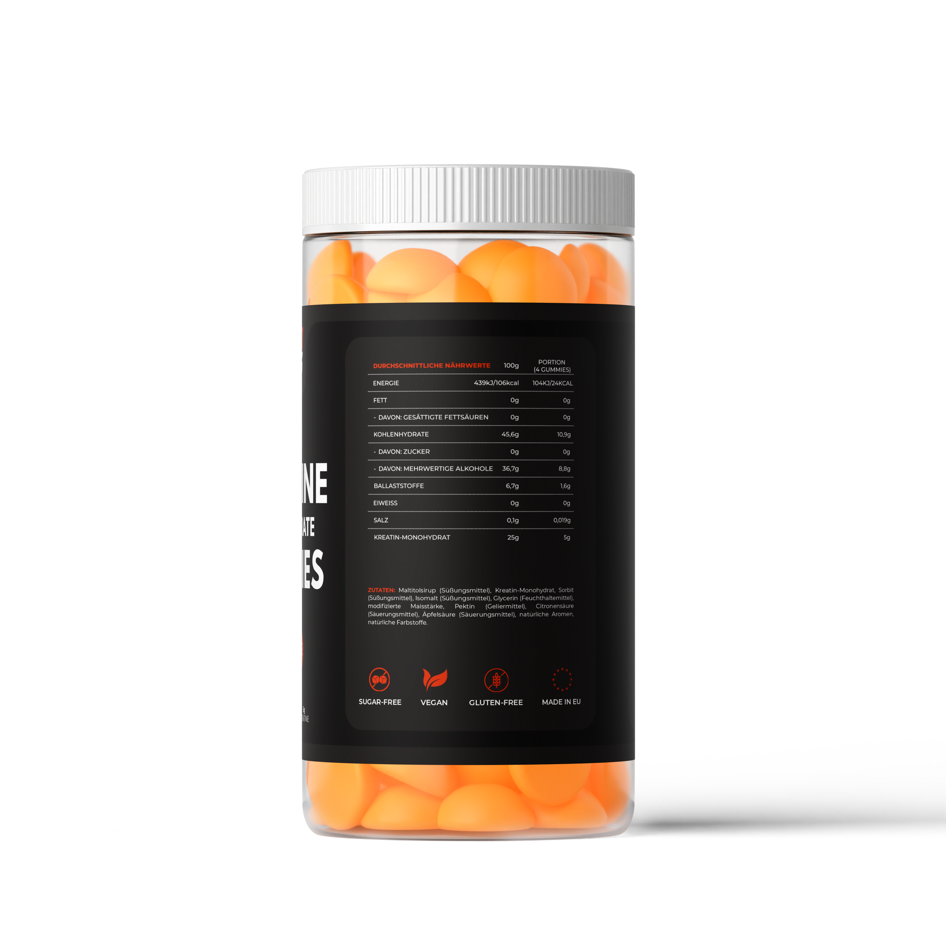 Maltitsirup, Kreatinmonohydrat, Sorbit, Isomalt, Glycerin, modifizierte Maisstärke, Pektin, Zitronensäure, Apfelsäure, natürliches Aroma, natürlicher Farbstoff.