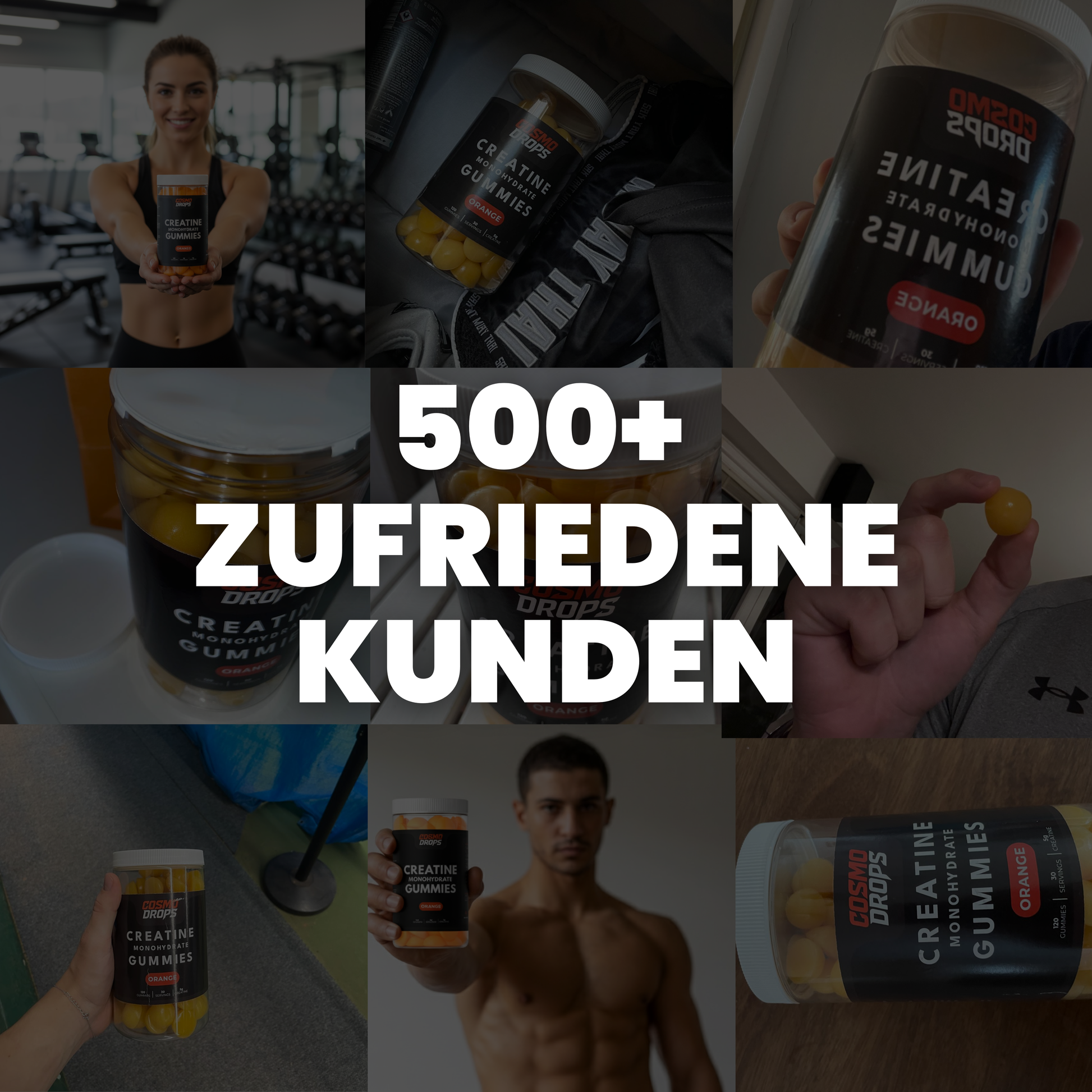 Mit CosmoDrops kannst du schon nach 1-3 Wochen spürbare Leistungssteigerungen beim Training erleben. Für sichtbaren Muskelaufbau und nachhaltige Kraftzuwächse ist eine regelmäßige Einnahme entscheidend, um deine Kreatinspeicher optimal zu füllen und das Maximum aus jedem Workout herauszuholen.